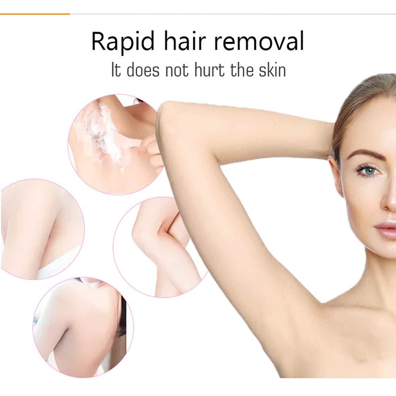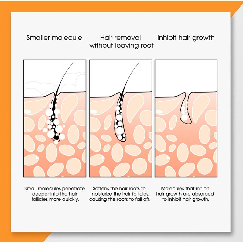 This product is blended with natural plant essences that have gentle properties without irritation and can rapidly soften the areas where the body hair comes into contact with the roots and effectively repair skin while removing hair . It offers double action of hair removal & skin care and causes no damage to pores , making your skin look silky smooth and elastic . Suitable for face , armpits , legs , breasts , arms and bikini area . Pregnant women should use the product with caution . Usage : Apply the Hair Removal Cream evenly to the area where you want to remove hair and leave it on for 3 to 5 minutes . Remove the hair with the spatula . Use the moisturizing lotion for skin care after hair removal to leave it feeling moisturized and elastic Ingredients : Water , Propylene Glycol , Cetearyl Alcohol , Calcium Thioglycolate Squalane . Dimethicone , Steareth - 10 . Potassium Hydroxide . Calcium Hydroxide Stearic ACID . Steareth - 2 . Bisabolol , Allantoin , Sodium Sulfite , Methylparaben , Propylparaben , Parfum .