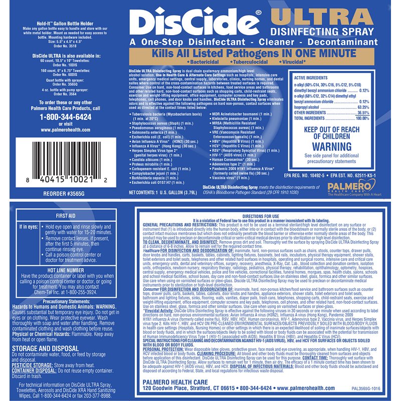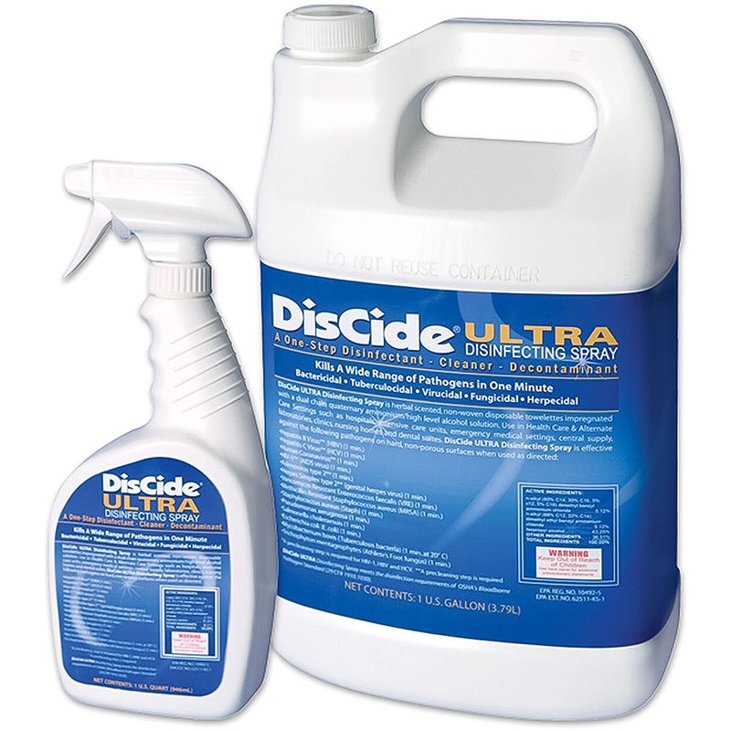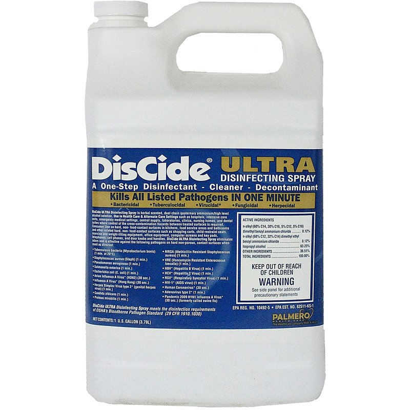 Discide Ultra Disinfectant Cleaner 1 Gallon x 4 Case of 4 Hospital-level, one-step, ready-to-use quaternary ammonium, high-level alcohol-based disinfectant that is laboratory-proven to kill deadly pathogens in one minute.