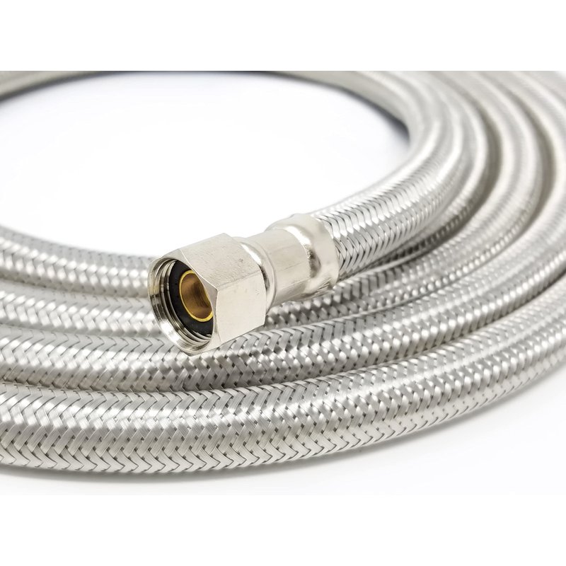 - 4 FOOT LONG Stainless Steel Braided Dishwasher Installation Kit. Includes 3/8" Compression x 3/8 in Comp, 3/4 in. Garden Hose (Female Hose Thread) swivel elbow adapter and 3/8 in MIP Elbow Connector Adapter