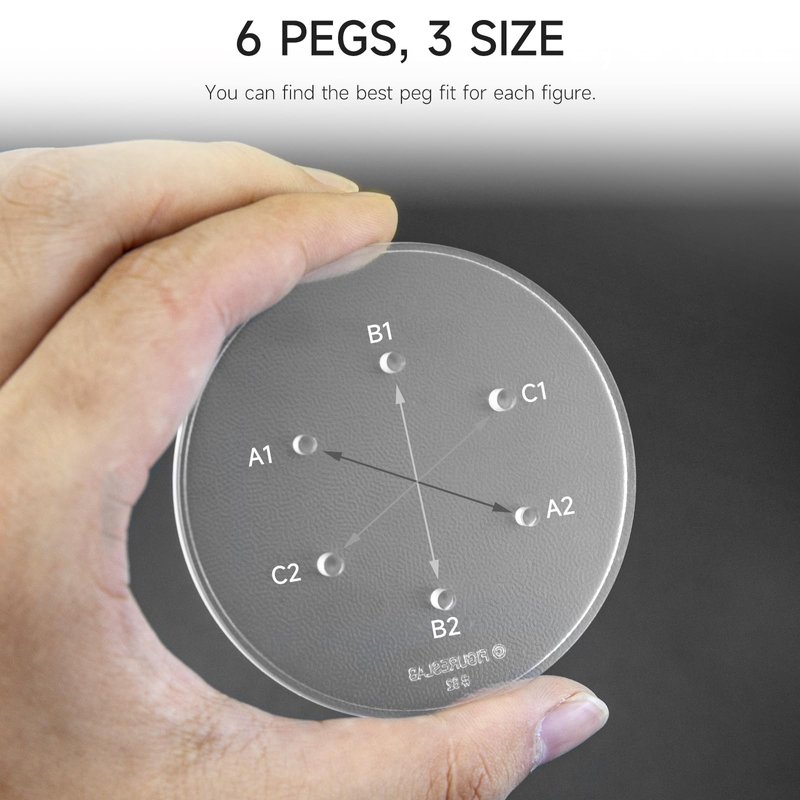 - PERFECT SIZE:No. 1 PEG SIZE: 3mm/0.12 inch peg hole in bottom of foot,No. 2 PEG SIZE: 3.25mm/0.13 inch peg hole in bottom of foot,No. 3 PEG SIZE: 3.6mm/0.14 inch peg hole in bottom of foot,Stand base 2.95 inches length,1.57 inch wide ,Multi-PEG Stand base Suitable For 6 inch Black Black Series Star Wars Figure toy(Figure not include)