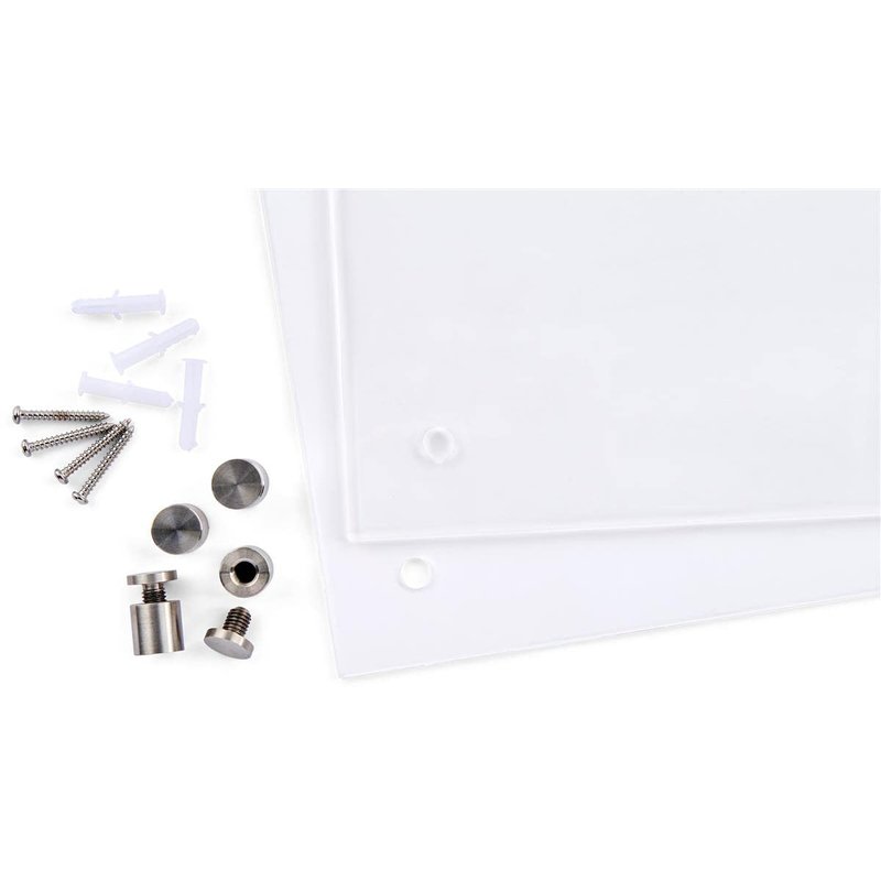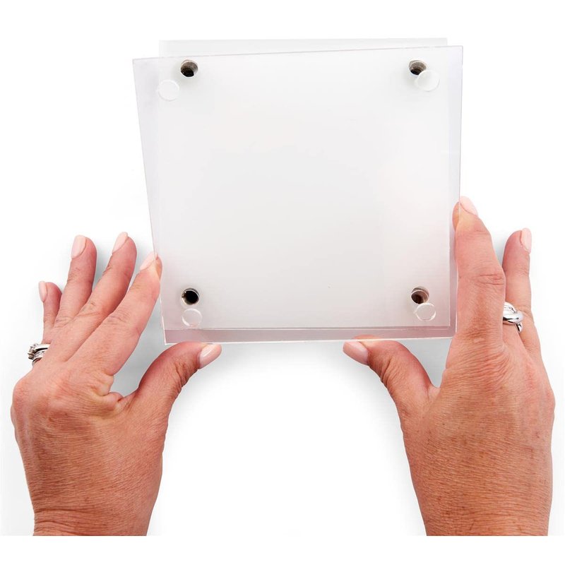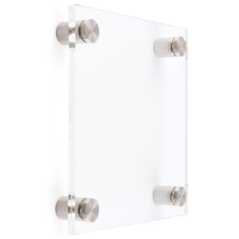 These kits for modern office wall signs are made recycled acrylic and stainless steel mounting standoffs. This signage display truly qualifies as a green product because it is made entirely of recyclable materials. Your custom-printed signs are placed between two clear 6" x 6" acrylic plates that are included. Print and insert your own signage, or buy our printable die-cut films (SKU: DSIGN63RP), which were created especially for this kit. For a polished appearance, the four standoffs project the sign 1" from the wall. Use in educational or office buildings for wayfinding, room or space identification, and much more. You can save money and time by using our DIY sign instead of dealing with a third party vendor.