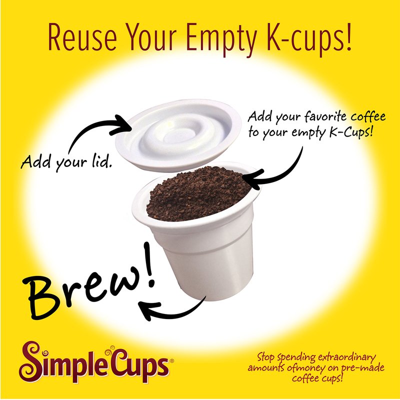 Disposable K Cups compatible with Keurig or POD Brewers. Our Simple Cups set of 25 Cups, Lids, Filters allows you to select the coffee of your choice in K-cups. Stop spending tons of money on pre-made K-cups! Don't settle for pre-determined flavors. Make your life simpler with Simple Cups. At a fraction of what a K-Cup would cost, you can use YOUR own favorite coffee in your Keurig machine - and can do so cost effectively and easily. Your coffee experience just got that much better