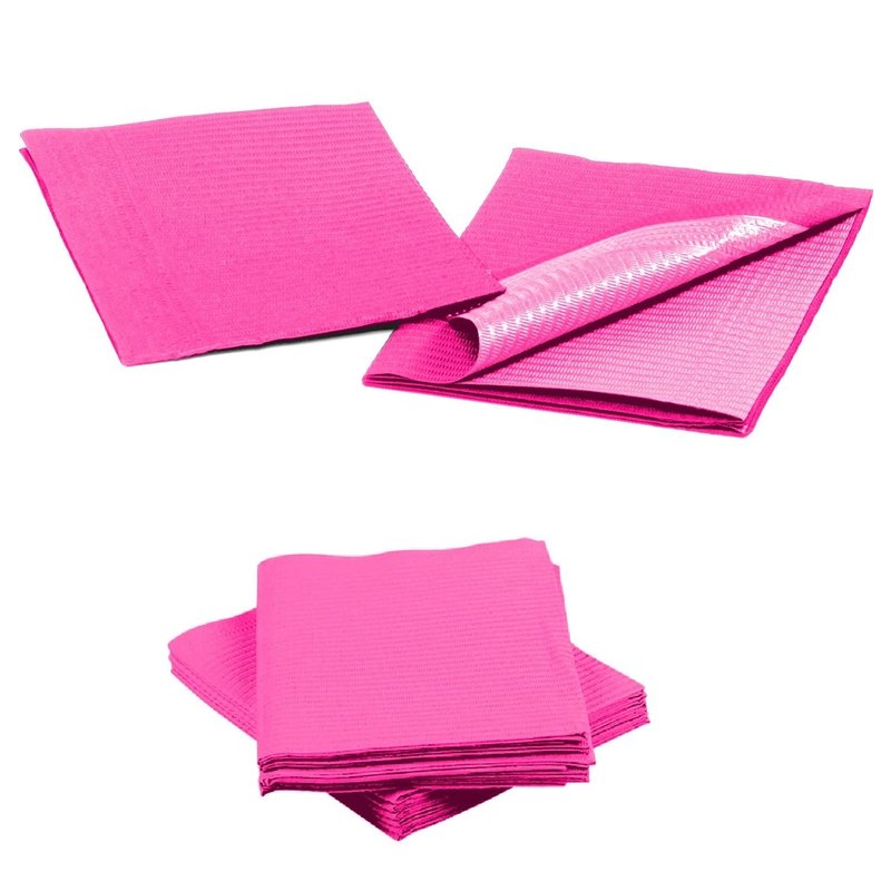 Disposable Dental Bibs 13"x18" - 3 Ply Waterproof Tattoo Bib Sheet for Patients - Dentist or Medical Tray Cover and Nail Table Cover Supplies, Fuchsia Hot Pink