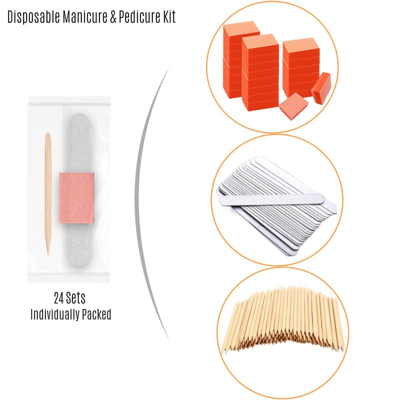 Disposable Manicure Kit,Nail Files Set,Wood Nail File/Mini Nail Buffer/Wood Nail Sticks,Individually Packed Mini Pedicure Set for Fingernails Toenails Nail Salon (24 Pack)