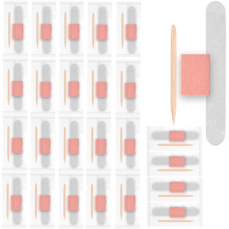 - Thoughtful Design: The disposable nail file is double-sided, suitable for almost all kinds of nails. The orange mini nail buffer block helps buff and prep nails before applying nail lacquer or gel polish.The wood stick is double-ended, with a pointed tip and beveled edge, making it suitable for varied applications.