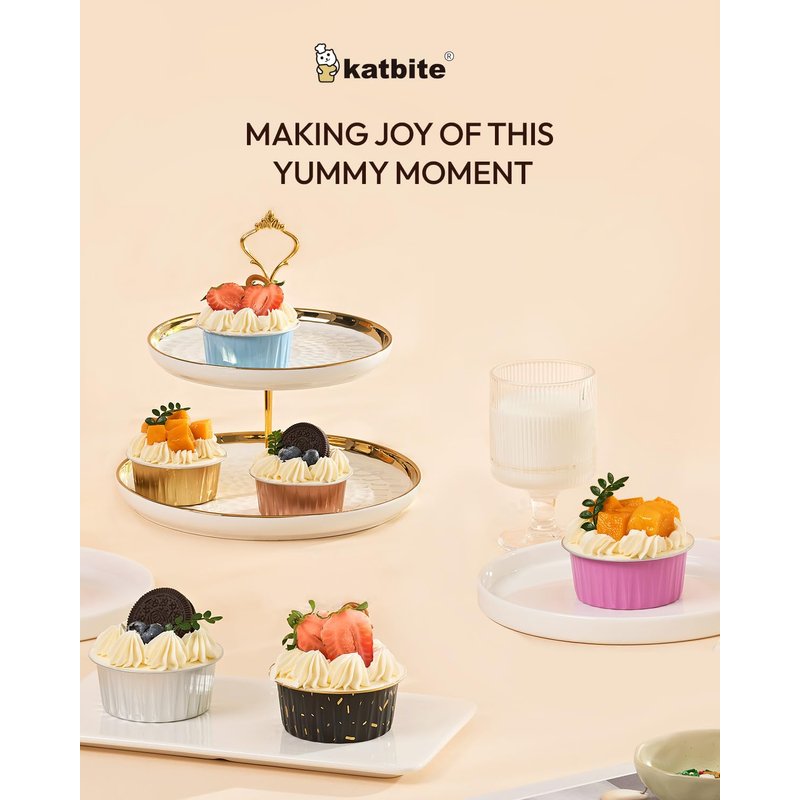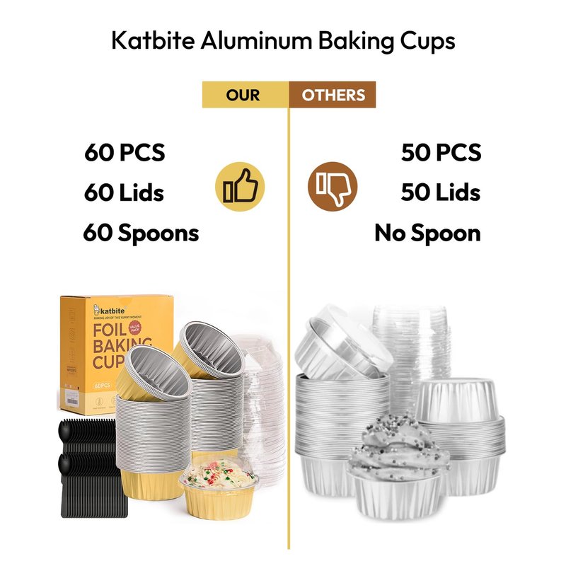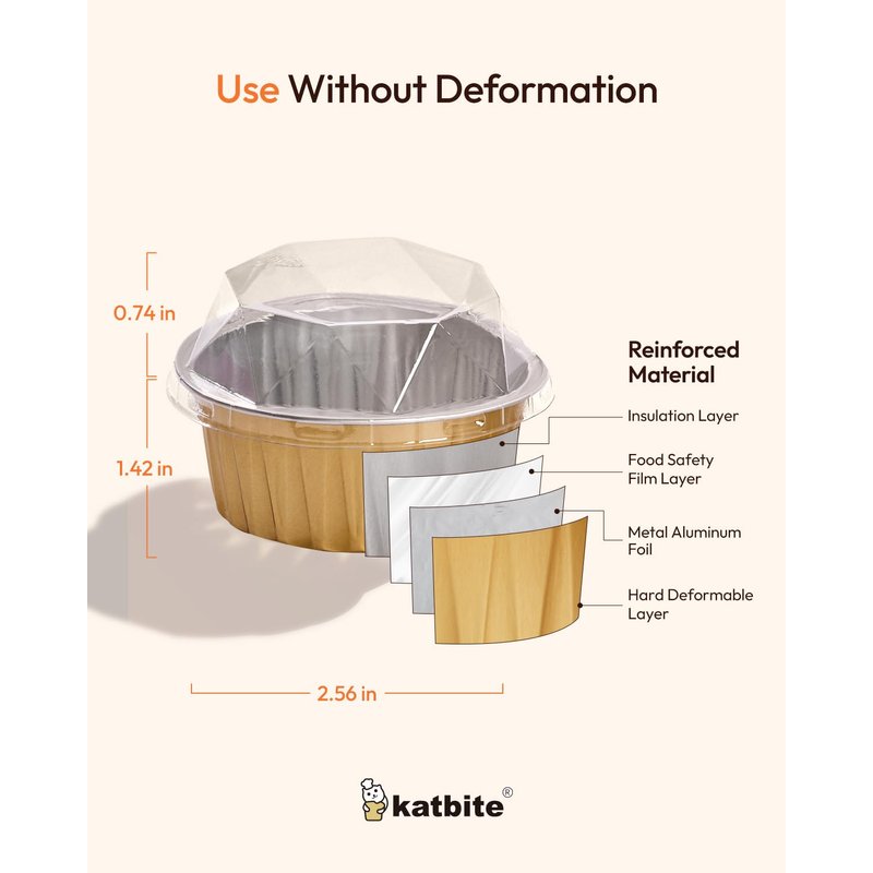 Disposable Ramekins with Lids - Katbite 60 Pack 5oz Aluminum Foil Cupcake Baking Cups, Muffin Tins for Creme Brulee, Desserts, Baking - Gold