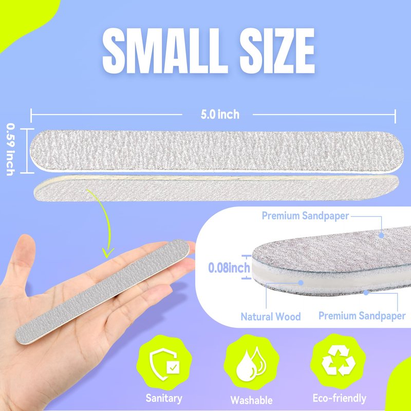 - PORTABLE THIN MANICURE FILES BULK SET - This mini manicure nail file is about 5" × 0.59" × 0.08" in size, which make it comfortable to handle and easy to use. Get this value pack of 50 pcs file soon!!!