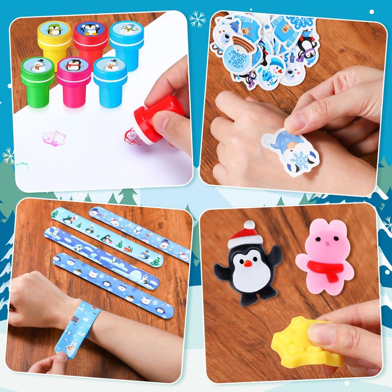 - Quality Material: our winter party suplies are made of quality materials, stacking buildable 12 colors crayons are made of paraffin and plastic; Stress balls and stamps are made of plastic, no harm to skin, safe for students, and can be used with confidence