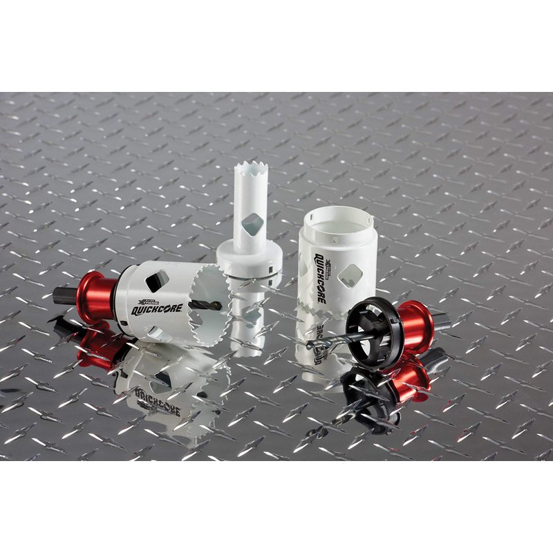 - QuickCore’s patented mandrel enables the user to quickly change hole saw sizes