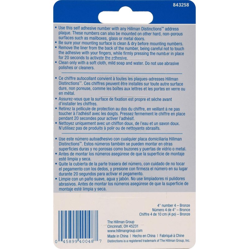 Distinctions by Hillman 843258 4-Inch Die Cast Self-Adhesive House Address Plaque, Aged Bronze, Number 4