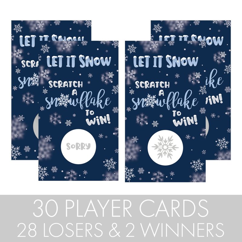 - TO PLAY: hand out silver snowflake themed scratch cards as unique favors. Scratch off the center circle to reveal a snowflake for the winners. Prizes not included.