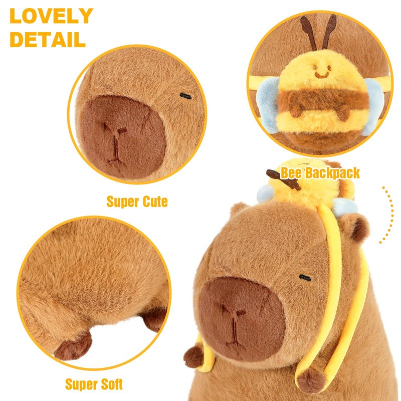 - Suitable: Capybara honeybee plush toy presents super soft and comfy, filled with down pp cotton, is a comfortable plush toy for sleeping, resting, reading and hugging, you can also place it as an ornament on sofas, cars, bedrooms, definitely a good companion and great decoration.