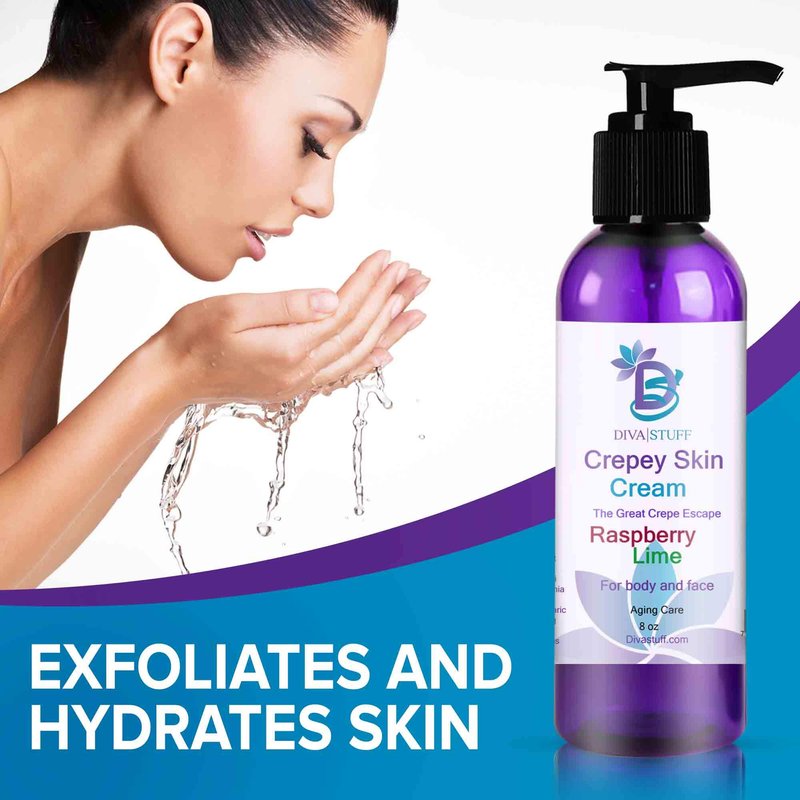 Diva Stuff Crepey Skin Cream Raspberry Lime | Anti-Aging Deep Moisturizer | Reduces Wrinkles & Fine lines | Increases Elasticity, Firmness & Collagen Production | Face & Body Lotion (8 oz)
