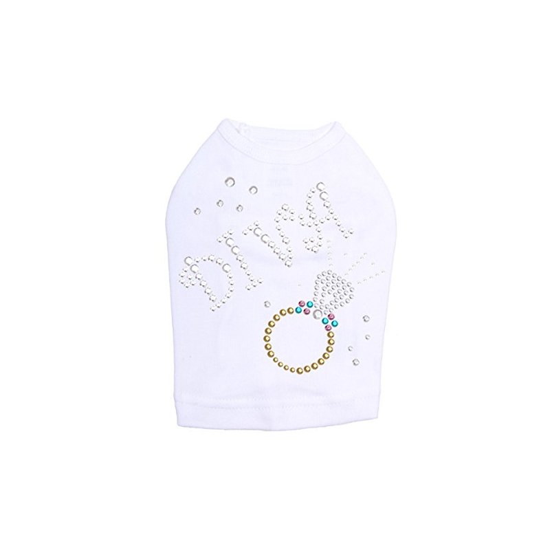 Diva with Ring - Dog Tank for large and small dogs. 4" X 4" design with silver, gold, turquoise, pink, clear, & black rhinestuds & rhinestones.