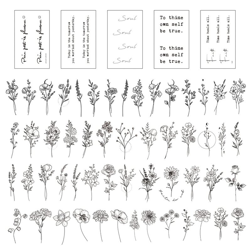 - Size & design:Each sheets size 10x6cm 3.9"X2.3”.60 sheets waterproof semi permanent minimalist tiny fake temporary tattoo for men women.Meaningful tattoos collection which included motivational quotes words phrases and birth flower tattoo.