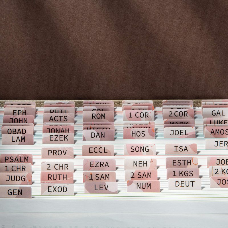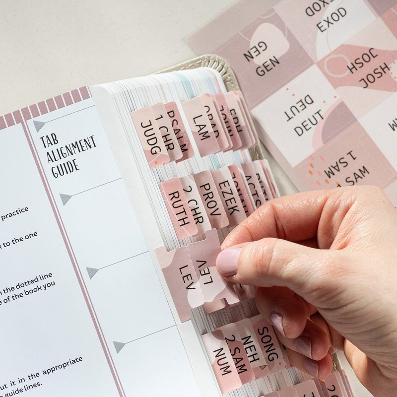 - Easy to Apply, Alignment Guide Included: The peel-and-stick Bible index tabs are self adhesive, simply align them with the provided guide or place them creatively in your new Bible. The Bible stickers are pre-scored in the middle for easy folding.