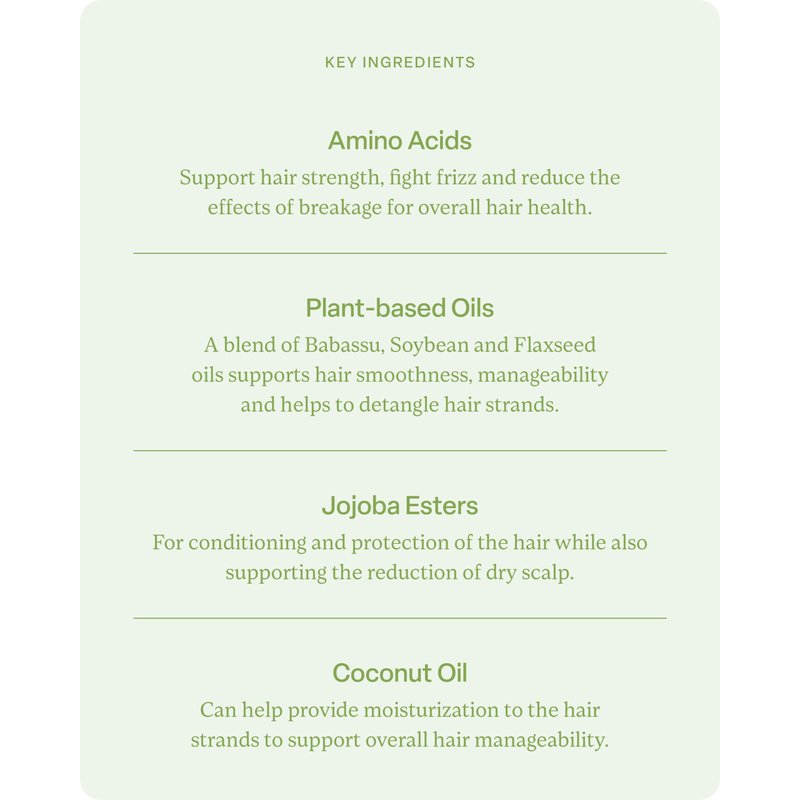 - KEY INGREDIENTS: This conditioner contains amino acids that support hair strength, fight frizz, and reduce breakage, while a blend of plant-based oils, jojoba esters, and coconut oil provides moisturization for thick hair.