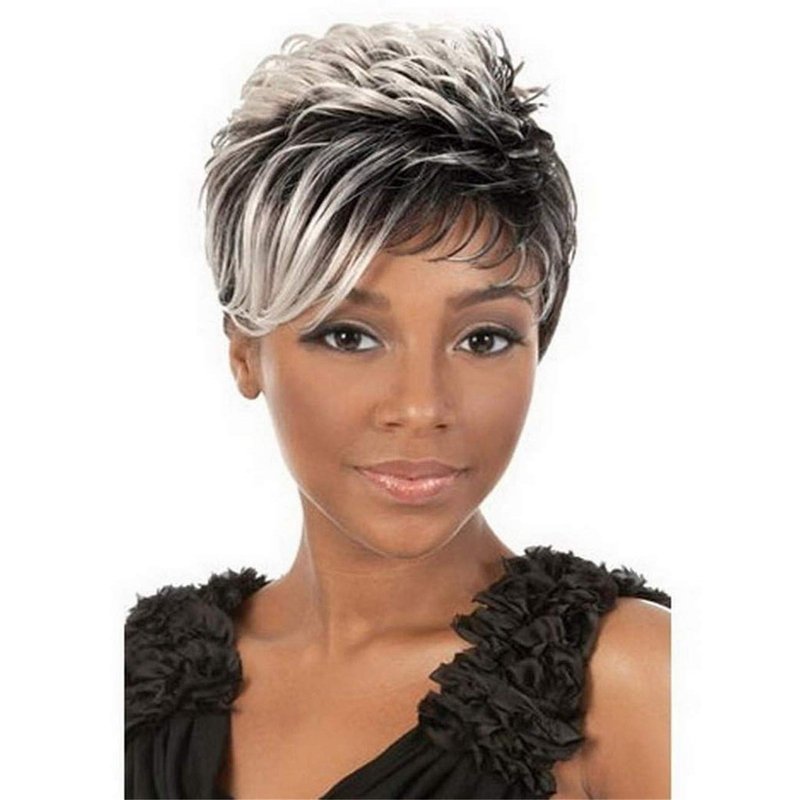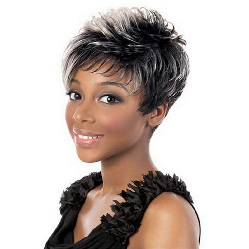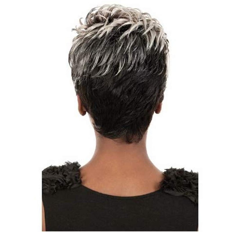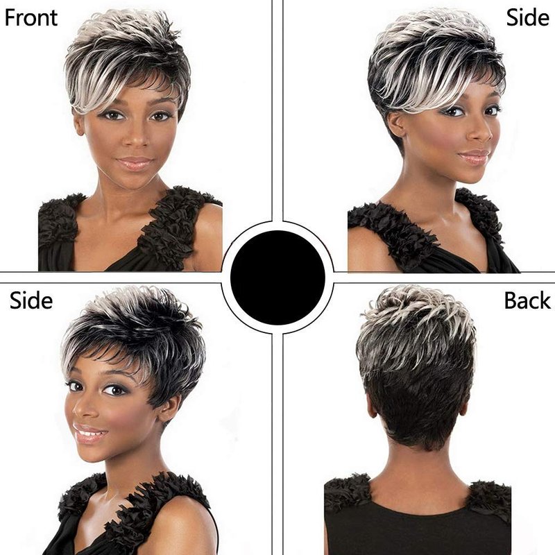 Divine Hair Short Mix Gray Hair Wigs For Women Short Pixie Cut Synthetic Wigs For Black Women Short Gray Pixie Wigs With Bangs Short Ombre Gray Pixie Cut Wigs For Women (COM059)