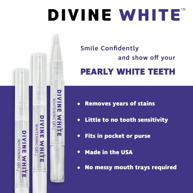 Divine White Snow Teeth Whitening Gel Pen with Brush Tip Applicator Includes 36% Carbamide Peroxide | Compact Design, Travel Friendly, Beautiful White Smile, Oral Care Teeth Whitening Pen, Pack of 3