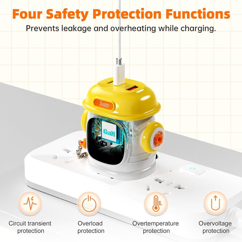 - 【Quadruple protection function】:The usb fast charger head has overload protection, short-circuit protection, over-voltage protection and overheating protection, which not only improves the safety of the charging device, but also ensures the efficiency and stability of the device when charging, bringing users a more assured and long-lasting use experience.