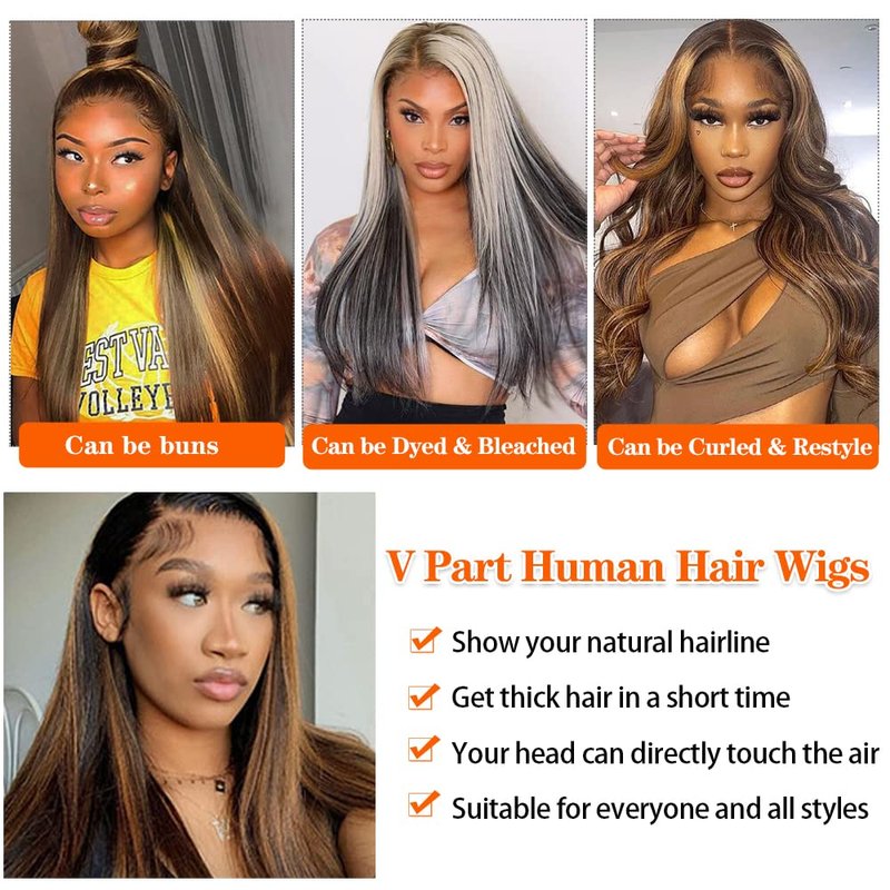 - 💕Upgrade U Part Wig : Straight V Part Wig Human Hair,No Lace Front Wig,No Sew In,No Gel No Glue Needed,Show Up Your Real Scalp And Natural Hairline.