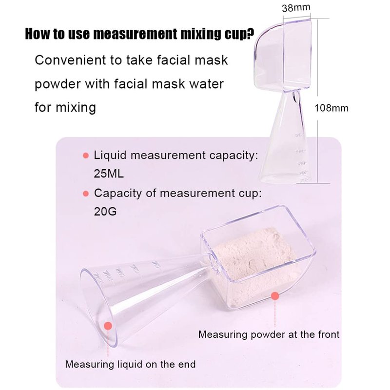 - About the measurement mixing cup is used for taking out mask powder and measuring a required amount of liquid to mixing the perfect facial mask for you;