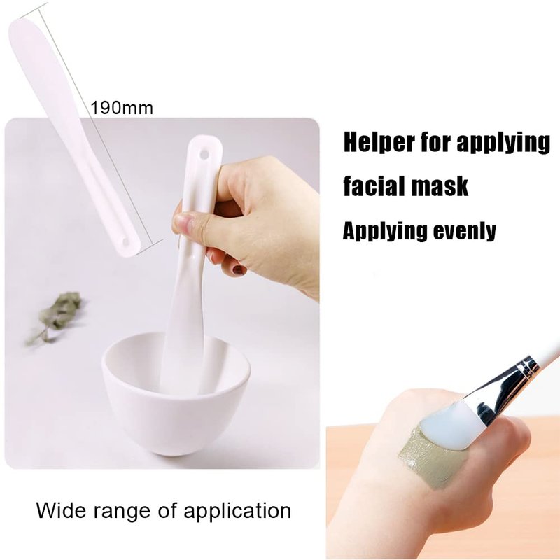 - The 5 in 1 Face Mask Bowl Set is include a face mask bowl, a silicone face mask brush+a face flat head brush, a measuring cup and a stick spatula, to help to create an accurate mixing proportion to get a perfect DIY SPA; Easy to clean and fast dry;