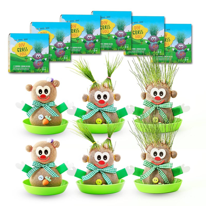 DIY Grass Doll Growing Kit(6packs) –Eco Friendly Bday Goodies, Playdate Activity, Party Favors, Craft and Art Gift for Kids, Family Fun, School Science Supplies Learning Resource, Stress Relief Toys