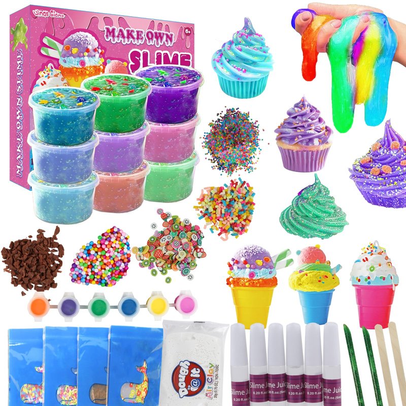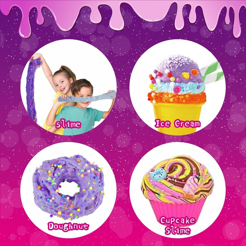 - 🍧【MAKE YOUR OWN SLIME】Give the gift of creativity with our DIY slime kit. This kit provides kids with the joy of sensory play. Not only can it immerse children in the soft and gooey world of slime, but it also helps develop their hands-on skills. . It's a wonderful way to stimulate their imagination and keep them engaged away from screens.