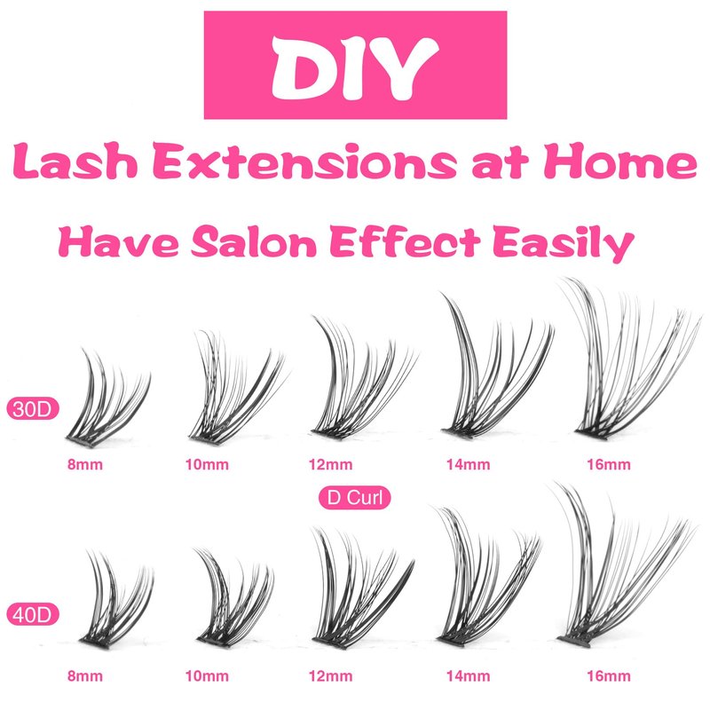 - Soft Handmade Lash Clusters ==Our lash extension kit offers an abundant supply of high-quality eyelash clusters to create mesmerizing volume and length for your lashes. Each lash cluster is carefully crafted to provide a natural-looking appearance while giving you the perfect wearing experience. With them, you can try various styles and effects. You have the freedom to choose different lengths and thicknesses according to your preferences or the occasion.