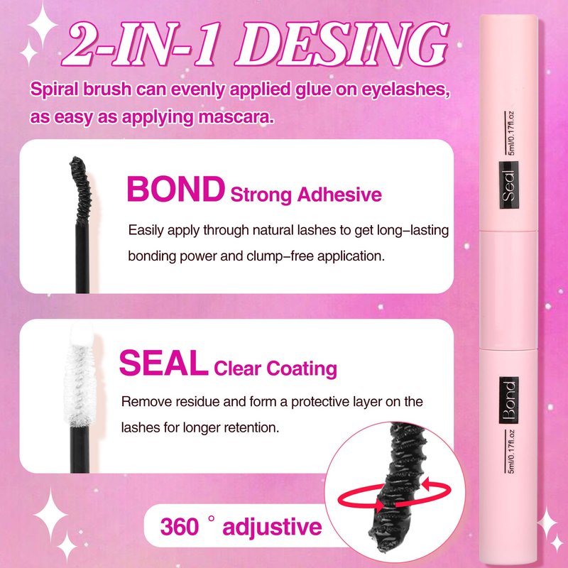 - Long-lasting and Strong Hold Lash Bond and Seal==Our specially formulated 2-in-1 eyelash glue dries quickly and can help you get up to 72h lash extension! Waterproof, sweat-proof, and anti-sensitive!