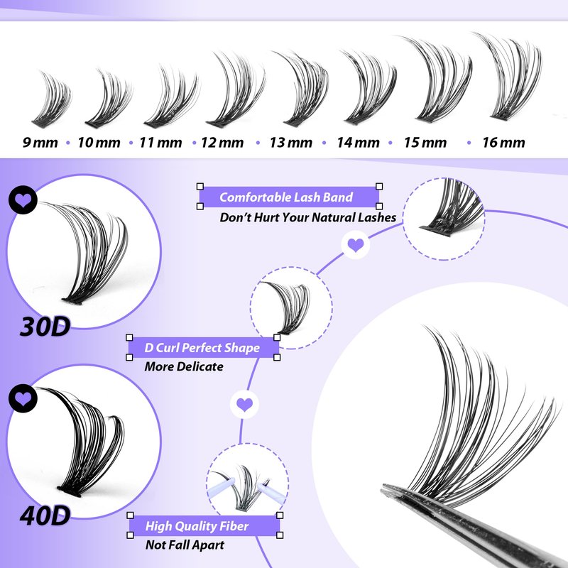 - Not Fall Apart& 24 Hrs Strong Hold - Made of advanced cluster lashes knotted technique the individual lashes band is sturdy than normal lash clusters, it won't fall apart if you pick it up from roots with a gentle way. The soft sturdy lashes band match with good quality bond and seal eyelash glue which is easy to be sticked and easily keep perfect over 24 hours