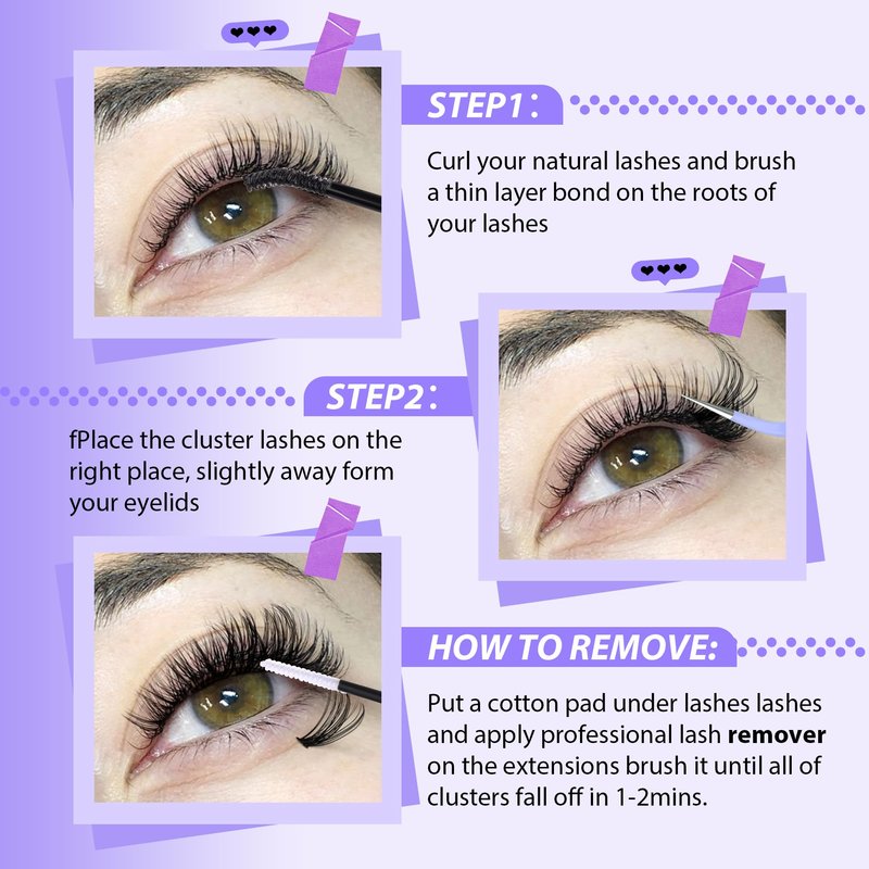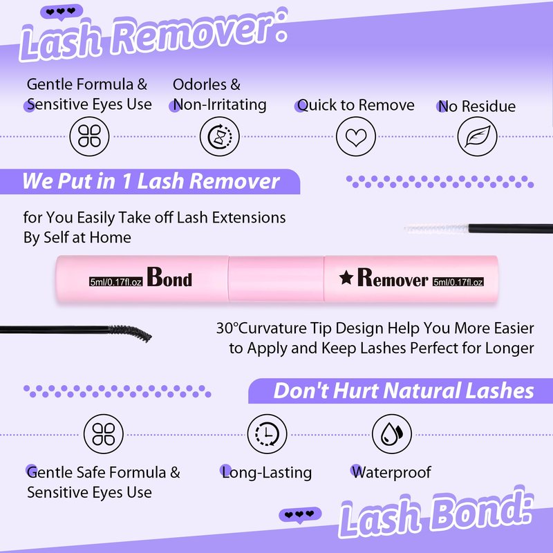 - Gentle Formula Remover - We put a lash remover in lash clusters kit to help you can remove lash extension by self at home, making it more convenient and easier to diy lash extension by self. The lash remover is made of essential oil, it is alcohol-free, fast, safe and no residue