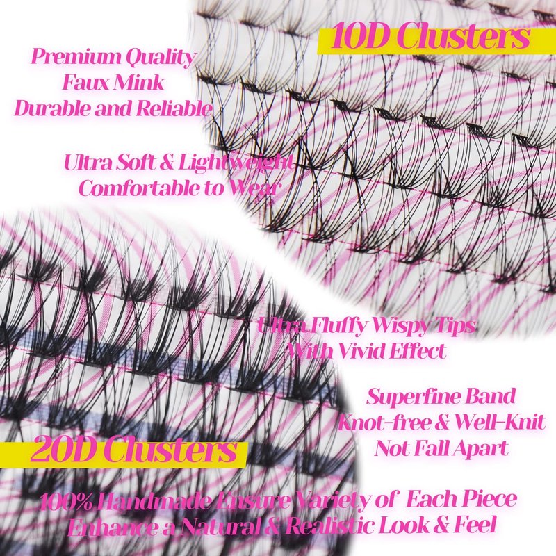 - DIY Individual Lash Clusters at Home: With our lash clusters extension kit, you can create endless possibilities for different styles, from natural to glamorous looks. It is perfect for those who want to save time and money by doing their lash extensions at home.