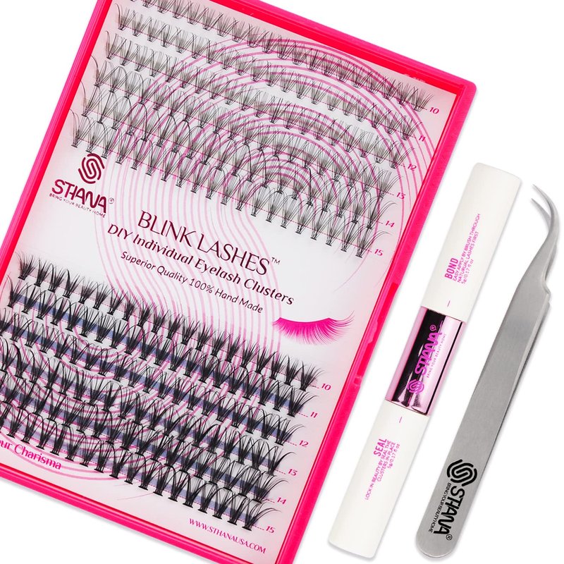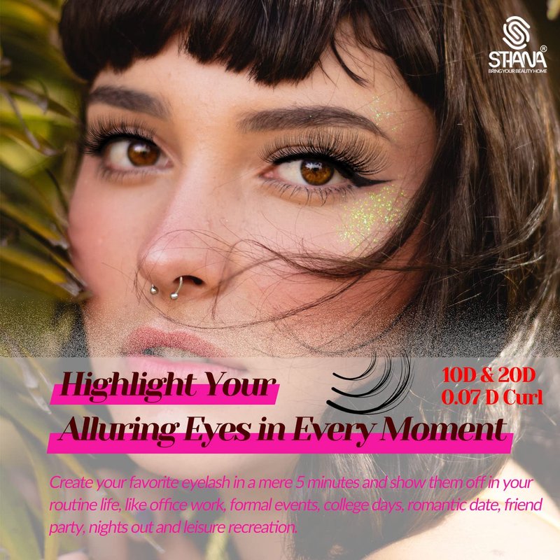 Introducing the STHANA DIY lash extension kit, the ultimate solution for creating your own unique eyelash at home. Our eyelash extension kit includes everything you need to achieve a salon-quality lash extension look, including premium quality faux mink lash clusters, advanced formulated lash bond and seal, and professional craft lash tweezers. Our lash clusters D curl are made from the finest quality, cruelty-free materials and are soft, lightweight, wispy, fluffy, knot-free and matte dark. Our specially formulated lash bond is strong hold, fast-drying, waterproof, and long-lasting. It is gentle on your natural lashes, and the lash seal is to prolong the lasting time and protective from damage of oil and sweat, so you can wear your extensions with confidence. Our STHANA DIY individual lashes kit includes easy-to-follow instructions, making the application process a breeze, even for beginners. Whether you're searching for "DIY lash clusters kit", "lash extension kit", “eyelash extension kit at home”or "individual eyelash kit", our product is the perfect solution. STHANA DIY lash clusters kit is perfect for those who want to save time and money by doing their lash extensions at home. You can create endless possibilities for different styles, from a natural to a glam look, and empower your creativity. And with our lifetime money-back guarantee, you can purchase with confidence. Order now and discover the benefits of our STHANA DIY lash extensions kit!
