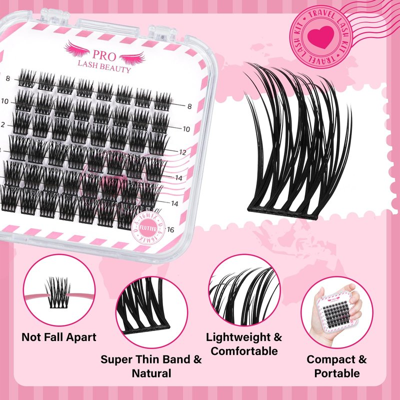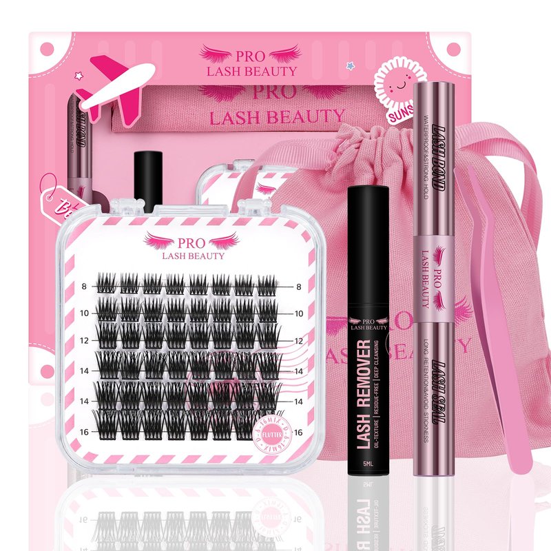 - DIY Lash Extension Kit: 48 pcs cluster lashes, one lash applicator, one lash remover and one cluster lash Bond and Seal. All the steps in one kit. DIY Lash Extension Kit for Travel saves space and has a full range of products to keep you looking beautiful all the time. You can take the PRO LASHBEAUTY DIY Lash Kit anywhere to enjoy your traveling life.