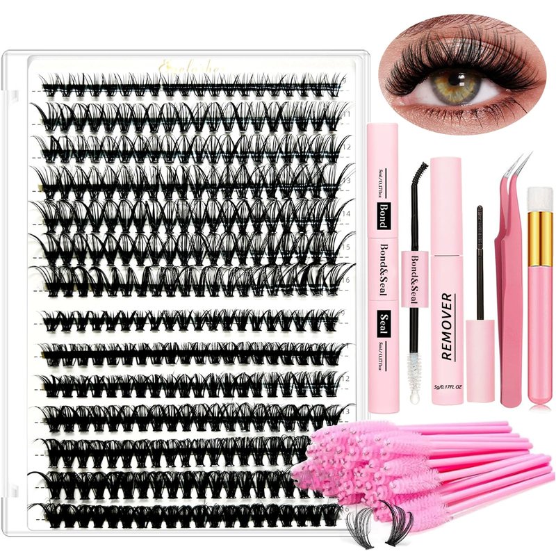DIY Lash Extension Kit Individual Lashes Kit for Beginner at Home with 280 PCS 9-16mm Length 30D+40D Curl Lash Clusters Lash Bond and Seal Glue Remover Tweezers Lash Applicator Tool