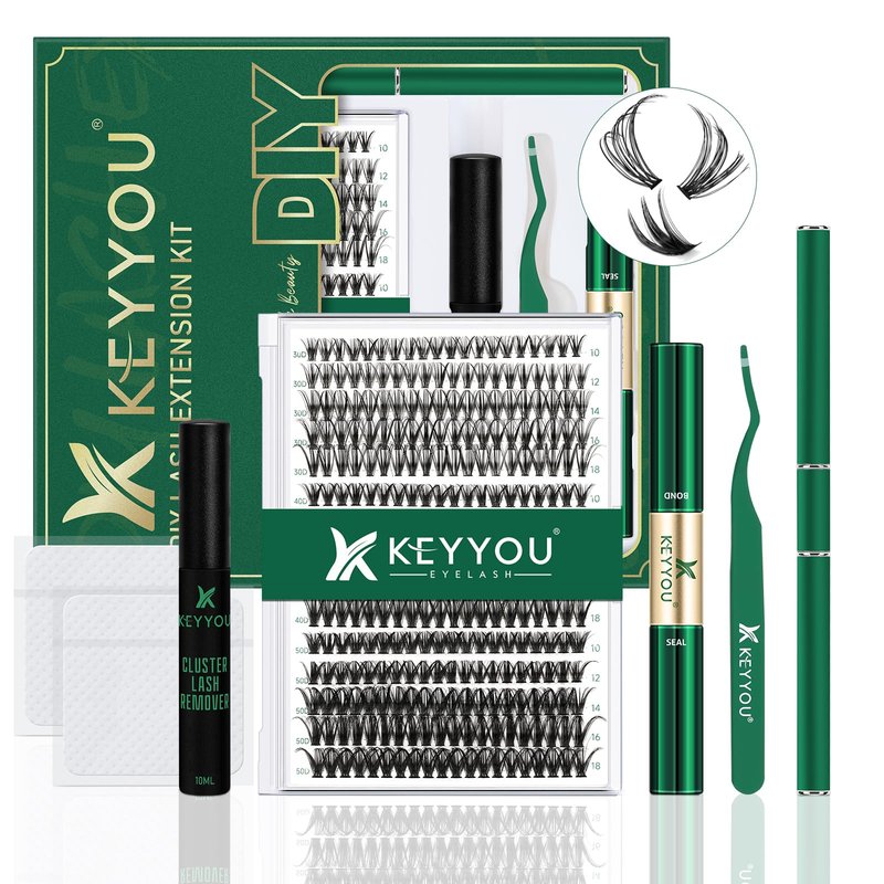 - 【What It Includes】KEYYOU DIY lash extension kit comes with 300pcs high quality lash clusters,10ML Lash bond and seal,10ML lash remover,one lash applicator,one lash brush and 20pcs cleaning pads to meet all your needs.