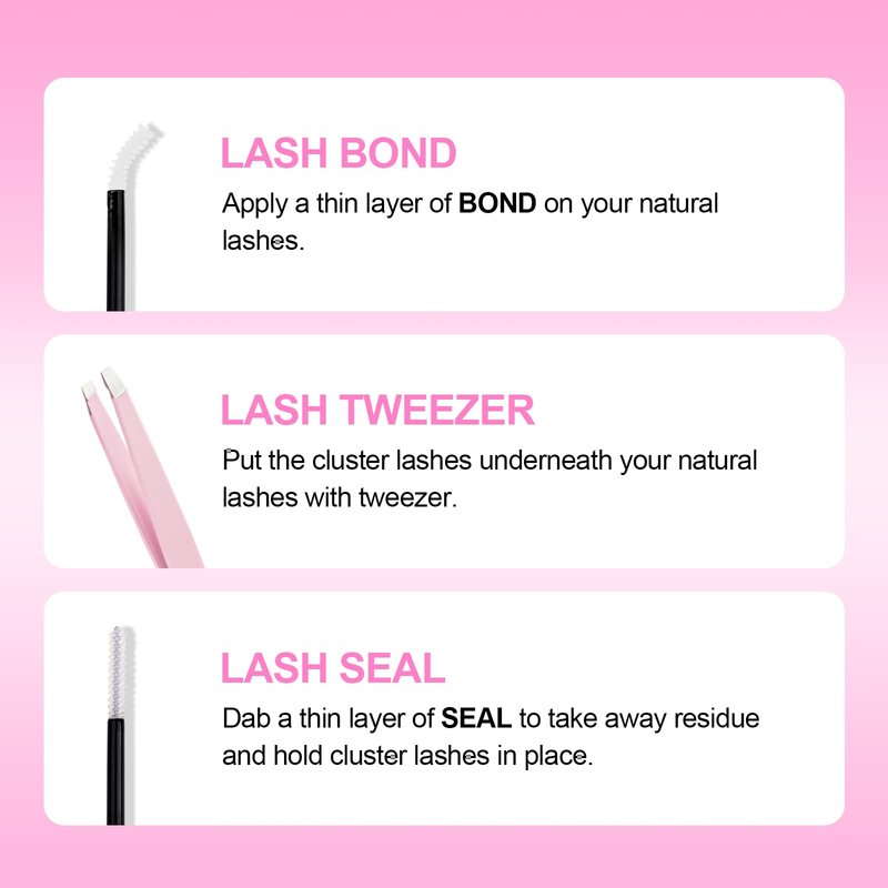 DIY Eyelash Extension Kit: The DIY lash extention kit includes cluster lashes, 2 in 1 lash bond and seal 10ml and one lash tweezer. You can get all the products you need for DIY lash extensions with time and money saving.