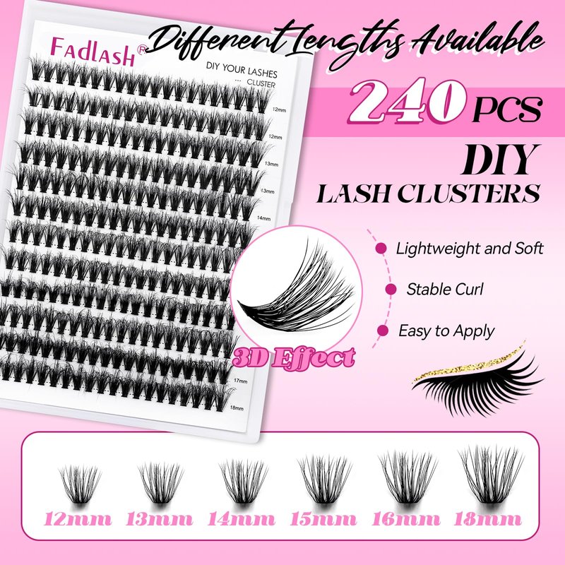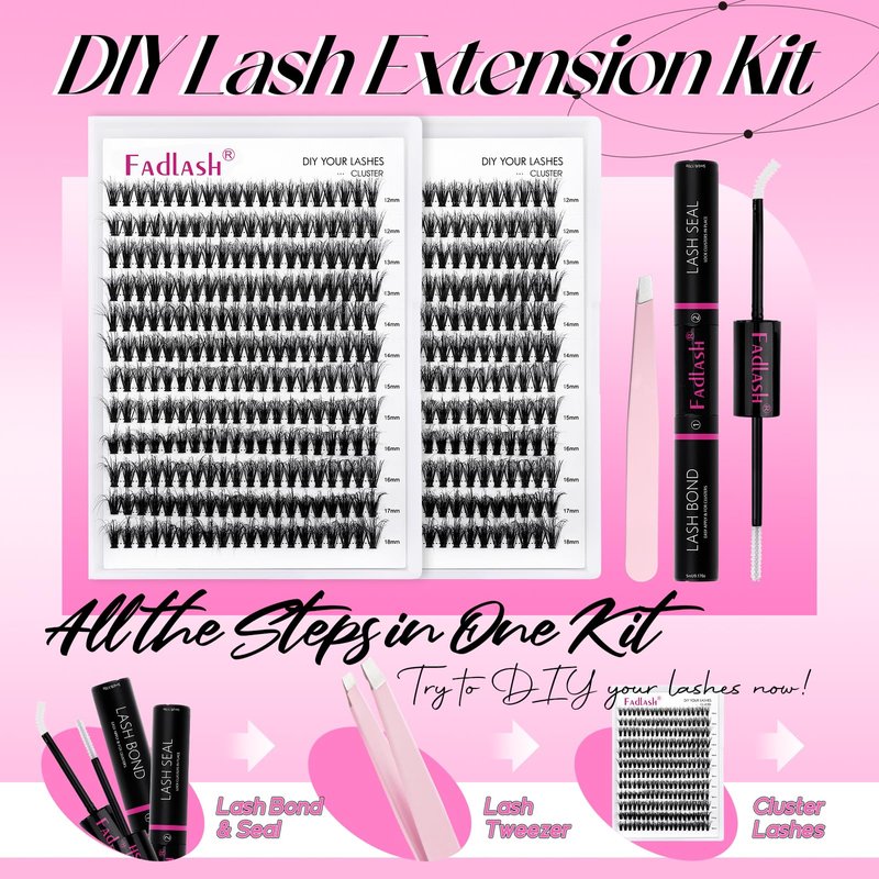 - FADLASH DIY lash extension kit: FADLASH cluster lashes with mixed length, lash bond and seal, lash tweezer in the eyelash extension kit. All the steps is just in this lash clusters kit. Also the lash kit wiil save your money and time.