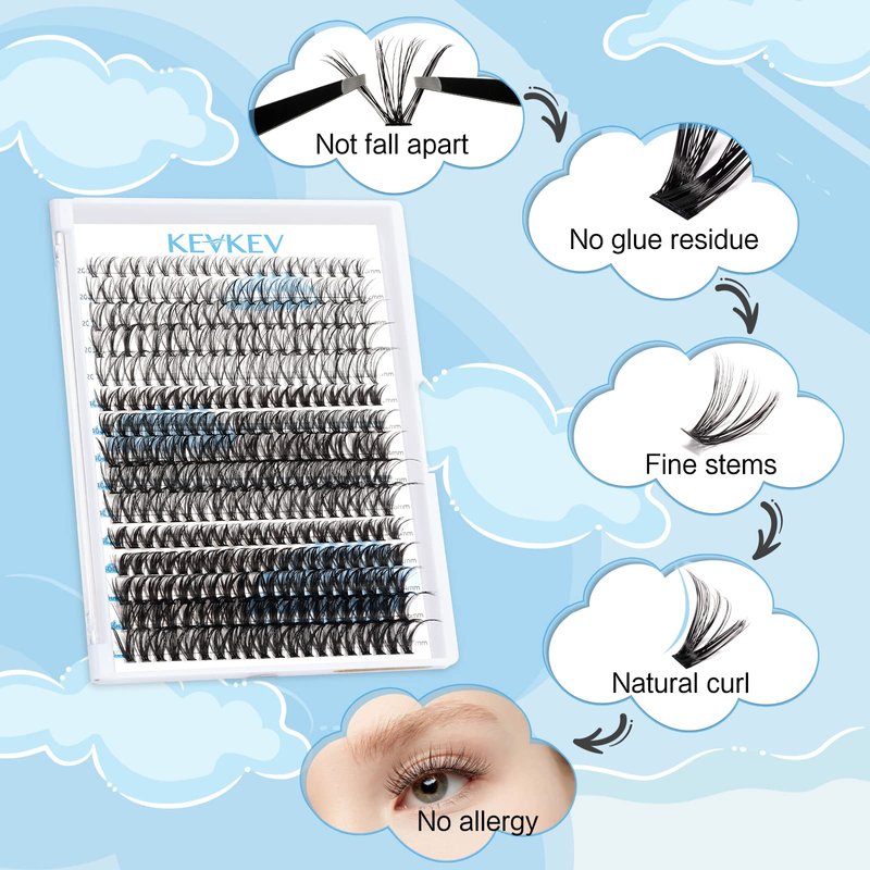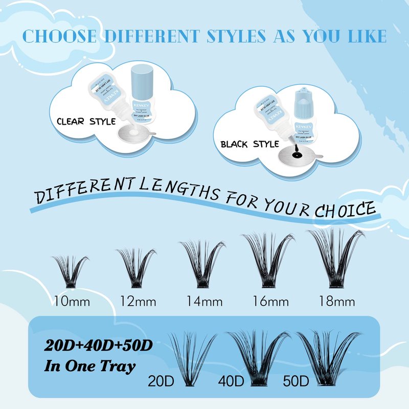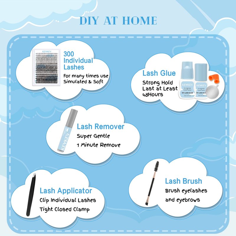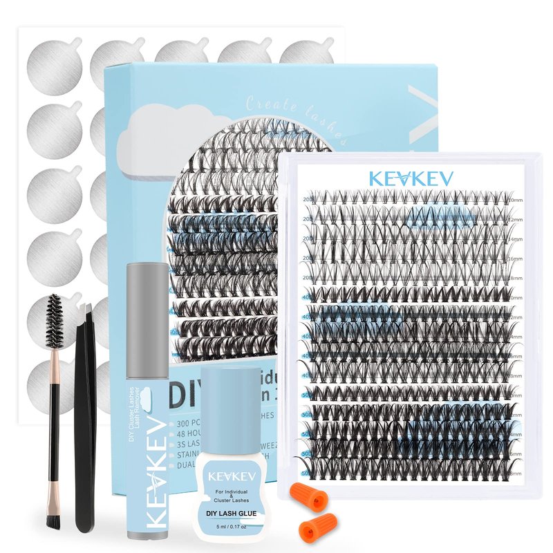 - For DIY Lashes: KEV Long lasting individual & cluster lash glue clear 5ml / 0.17 floz. It is safe to the eyes. And you could DIY eyelash extensions with this cluster lash glue by yourself. Very convenient and practical for everyone.