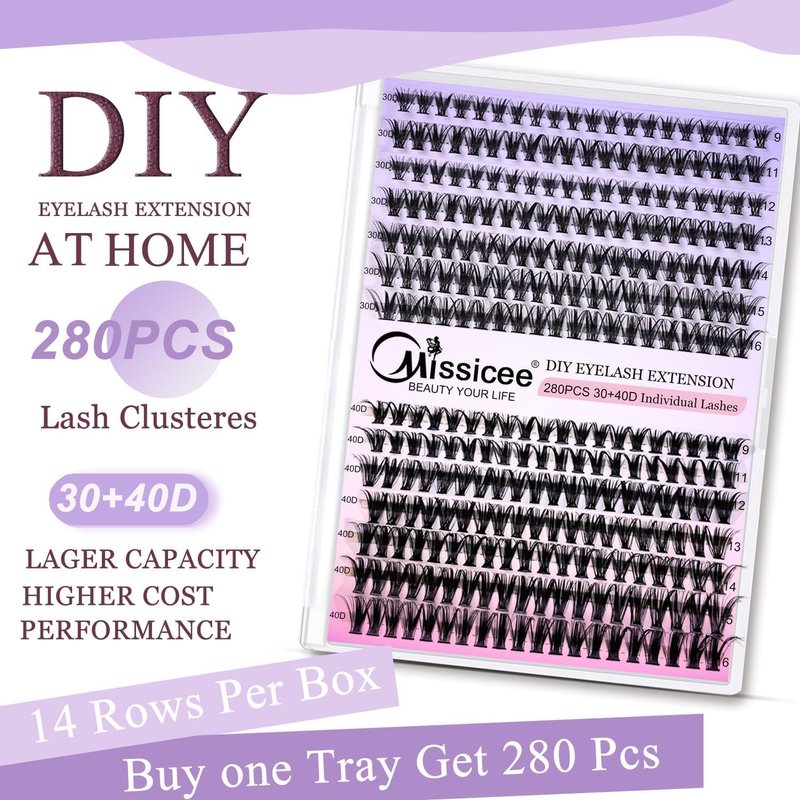 - 【You Will Get】 Our lashes extension kit provides 280 PCS cluster lashes (30D+40D), eyelash glue and remover*1, Lash Application*1, instructions*1. With lash clusters kit,you can get the perfect extension look effortlessly at home. Take control of your lash game and save money and time by ditching expensive salon appointment.