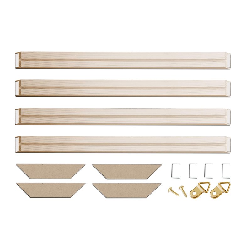 - No-Nail Design: Say goodbye to nails and tacks - our bars boast a no-nail design, streamlining the installation process. Each bar is equipped with pre-attached adhesive, ensuring a robust and secure bond between the canvas and stretcher bar.