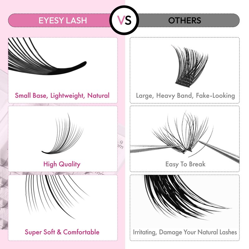- ✅ Tiny Base: Compared to others, Eyesy wispy lash clusters have knot-free tiny bases. Each individual lash cluster feature a spike lash at the center which are perfect for wispy, natural, cat eye trending lash sets, truly a game-changer.
