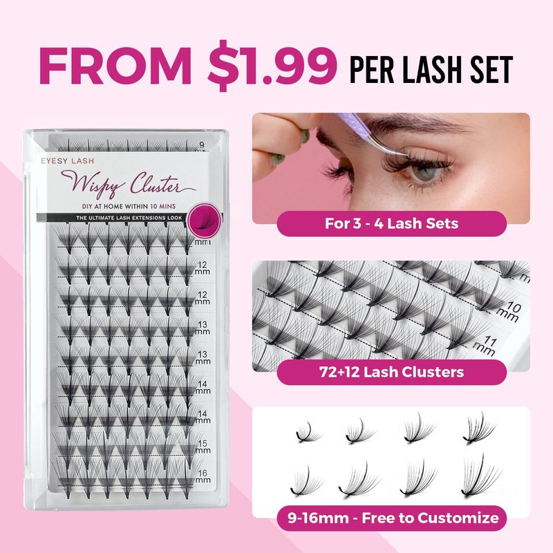 DIY Wispy Individual Lash Clusters 72+12pcs 20D D Curl 0.07 9-16mm Mixed Lengths | Eyelash Clusters Wispy Natural Lash Look Eyelash Extension at Home by Eyesy Lash