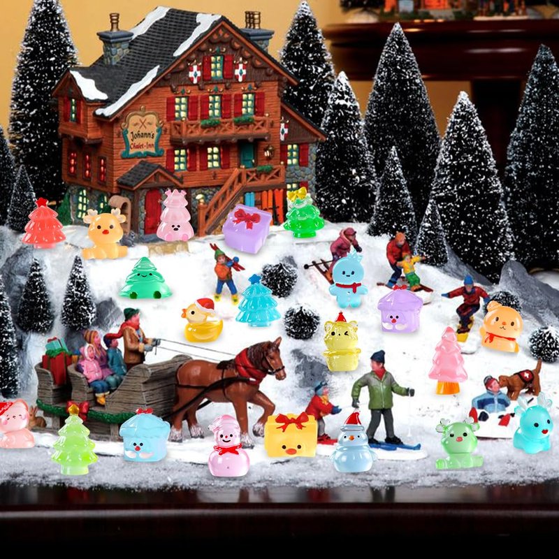 DIYDEC 40PCS Mini Christmas Luminous Figurines 40 Styles Christmas Resin Miniatures Glow in The Dark Tiny Figures to Hide Small Snowman Figures for Party Favors Bag Fillers Garden Dollhouse Decor