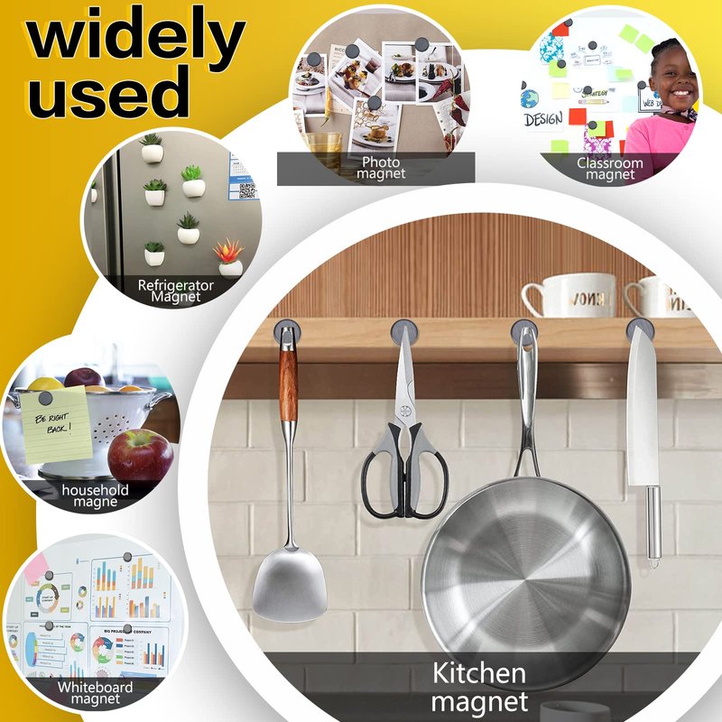 - People widely use our button magnets for home and office ,strong crafts magnets are also perfect for wall decoration, photo wall, display board adsorption, kitchen cabinets, refrigerator stickers,Scientific projects, arts, and DIY crafts, or classrooms.