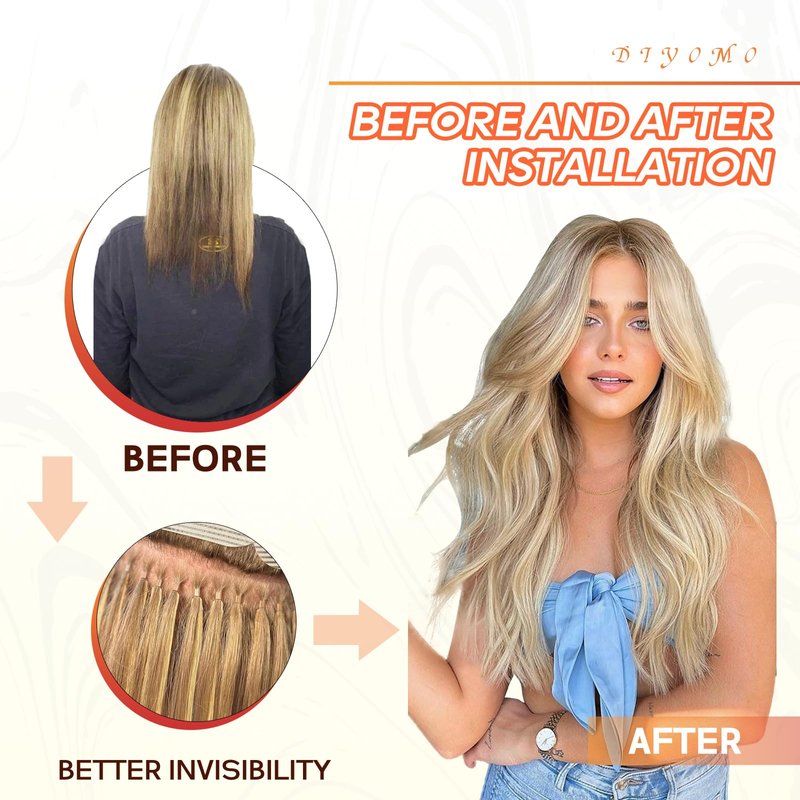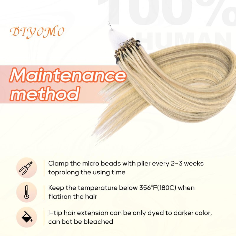 - 【 Microlink Hair Extensions Human Hair 】DIYOMO high-end series, microlink hair extensions human hair no tie, Microlink Hair Extensions no fall off, with a healthy girl's braid as the raw material! It feels smooth and soft, just like your own hair. Microlink Hair Extensions Perm, curl, straighten, and freely change the shape to your liking. Due to differences in lighting intensity, shooting Angle and display equipment, the color may be slightly different from the actual product.