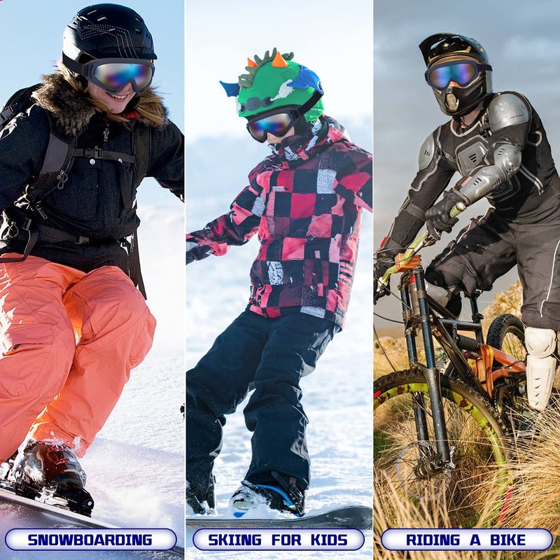 - SAFE & COMFORTABLE: Kids safety first. The boys' and girls' snowboard goggles feature a soft TPU frame and impact resistant PC lens that provide extra safety in case of fall or crash. The breathable soft sponge protects the eye area and has excellent sweat absorption function. Different color ski goggles for children provide a natural and smooth ventilation system, bring the fresh air.