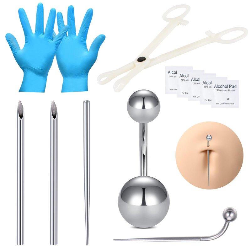 - Belly Button Piercing Set: Our professional kit includes all the essential tools for a successful belly button piercing.